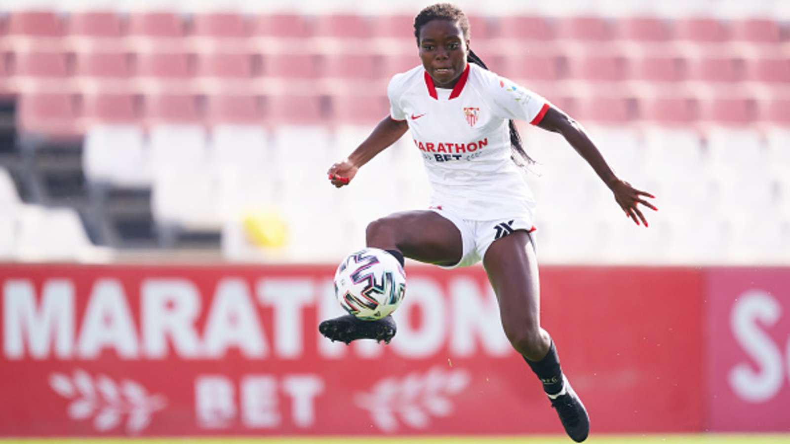 André silva (sevilla) left footed shot from the centre of the box to the bottom right corner.
